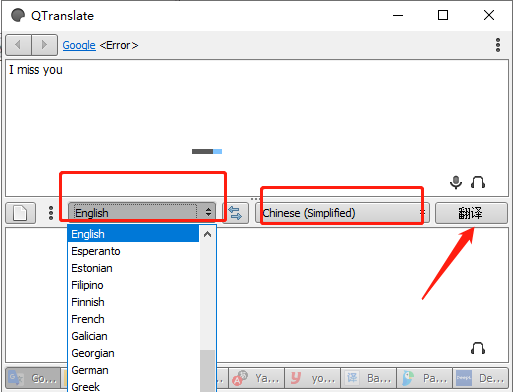 1、在软件内你可以看到最下方提供了9个翻译引擎供你自由切换,包含谷歌、微软、百度、有道、Deelp等,大家可以根据自身的使用习惯更好的选择。