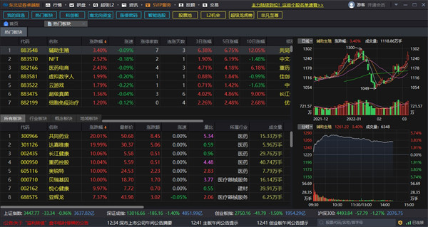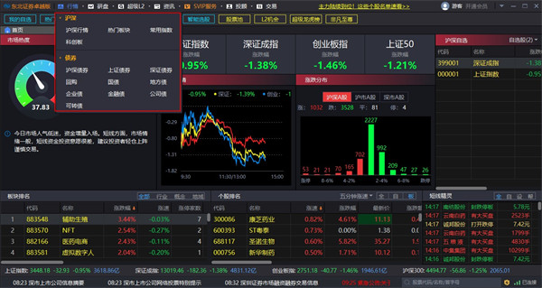 6、支持对当前的市场风向、大盘透视、板块资金等实现盯盘操作;