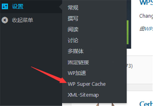 2、安装后有两个方法进入。在已安装插件中找到WP Super Cache进入设置,或者在wordpress后台的设置中进入WP Super Cache。