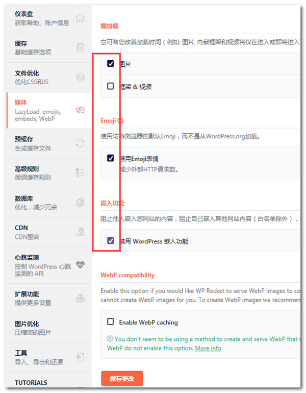 Emoji和嵌入功能大部分网站都没用到,可以勾选,提高网页载入速度。