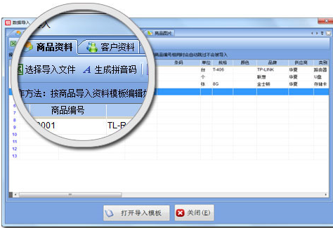 比如:从其它软件中导入期初库存、商品资料、客户、供应商、会员等。