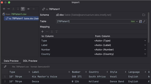 默认目标实体称为映射。 在这里,您可以定义目标表,并通过目标表的列映射文件列。 如需编辑表本身,请点击 Edit(编辑)按钮: