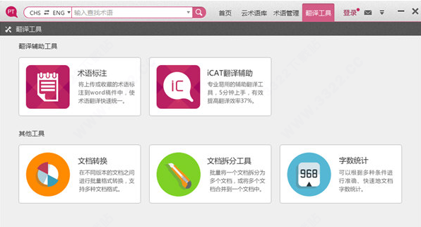 3、工具箱:不仅包含了术语标注工具以及ICAT翻译辅助,还有支持不同office版本间的文档转换,文件拆分以及字数统计工具,这些对翻译或者其他文字工作者都很实用。