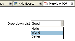 4、下拉框中设计了’Hello’, ‘World’和’Better’三个选项,而编辑框中的’Good’是手动填写的。当’World’被选择的时候,编辑框中的’Good’会被自动替换掉