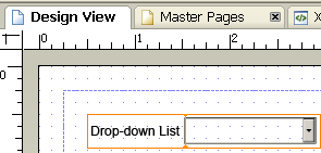 1、首先从标准控件库中找到下拉式选单(Dropdown List)并且通过拖拽的方式把它拖入’Design View’视图之中