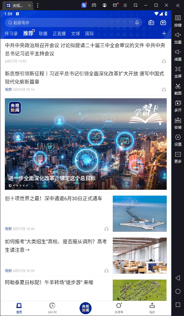 央视新闻电脑版是一款基于安卓模拟器运行的中央广播电视总台新闻新媒体中心官方客户端,全天候提供新闻资讯的直播、点播、预告、搜索和分享服务,实时更新,确保您随时掌握最新动态。央视新闻APP旨在为用户打造的掌上新闻中心,让世界尽在掌握。作为国家级的新闻媒体,央视新闻APP致力于提供最权威、最全面的新闻资讯,涵盖国内外重大事件、政治经济、社会生活、文化娱乐等各个领域。
