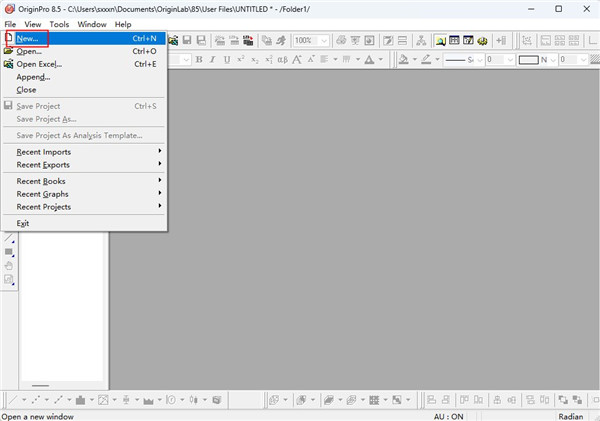 1、打开origin8.5,然后点击“file”-“new....”
