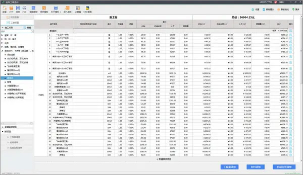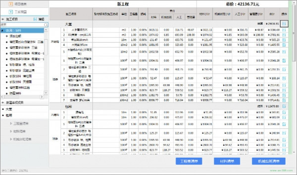 3、快速完成工程量清单、材料详细清单、机械人工清单;