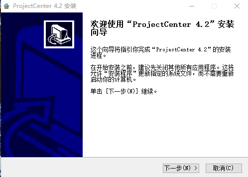 1、解压安装包,双击“ProjectCenterV4.2.exe”,等待片刻自动弹出安装界面,直接跳过点击下一步
