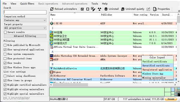 Bulk Crap Uninstalle是一款非常专业的批量程序卸载删除软件,它能够支持一次卸载多个项目,以此加快这一进程,并且能够防止逻辑冲突,非常有用和可靠,帮助您最快最方便从计算机中删除程序。可以轻松帮助用户清理残留物,没有用的注册表等等。Bulk Crap Uninstalle擅长以最少的用户输入删除大量应用程序。它可以清理 Windows 安装剩余文件、检测孤立的应用程序、根据预制列表运行卸载程序等等!尽管 BCU 是为 IT 专业人员设计的,但默认情况下它非常简单,任何人都可以使用它。