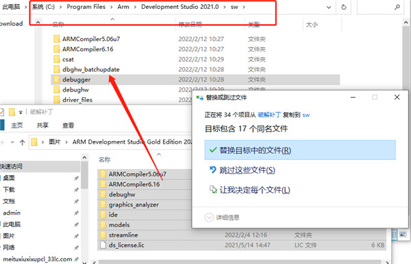 7、安装完软件后先不要打开,我们先将补丁复制到软件安装目录下的Development Studio 2021.0\sw 目录中;