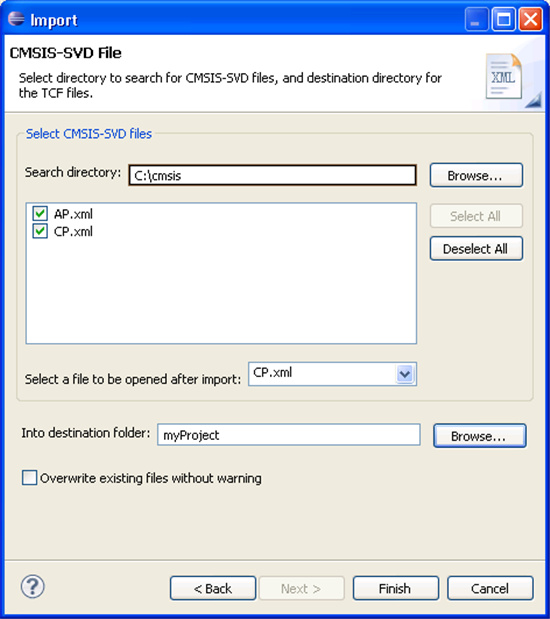 10、在 Into destination folder 字段中,单击Browse...以选择现有项目。