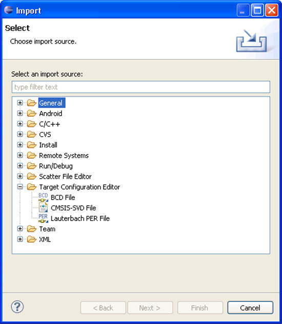 11、单击完成。新的目标配置文件 (TCF) 在Project Explorer视图中可见。