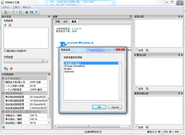 1、可以自由添加想要统计的文件的扩展名。2、能够分析和预测开发项目的工数(人月数)和成本。