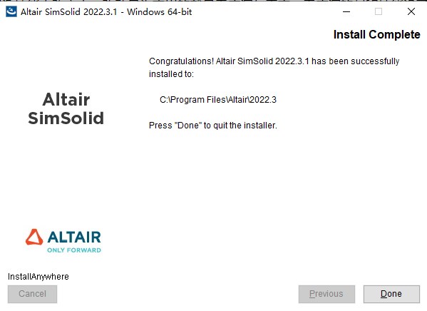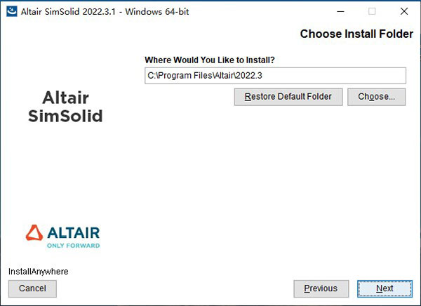 默认路径:C:\Program Files\Altair\2022.3