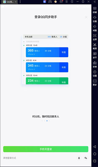 QQ同步助手电脑版是需要借助模拟器在电脑上运行的一款资料同步备份软件。软件可以自动备份手机资料,有效防止数据丢失,让用户在更换手机时可以一键操作,将备份在云端的手机通讯录、软件、文档等重要资料转移出来,确保不同设备之间的数据一致性和实时性。