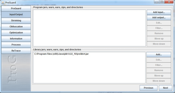 3、注意proguaardgui启动后默认加载的libraryjar中包含的rt.jar,它的版本和你使用到的jvm版本一致。