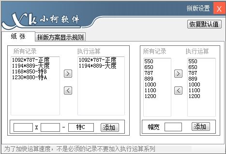 印机适印范围设置:由于用卷筒纸拼版,纸张的大小是可以灵活掌握的,但印刷机有一个进纸的上限和下限范围,超过这个范围是不好印刷的,所以您必须了解您企业印机设备这个进纸范围,并输入电脑并保存,这样程序在进行自动化拼版时会自动排除超范围的拼版方案。