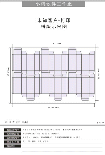 点击【打印】按钮可以把拼版样式和拼版数据打印出来,供您下达设计和生产计划的样本。打印样式见下图: