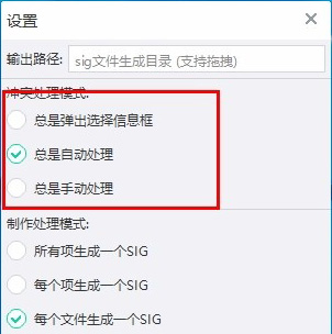 9、制作处理模式,可将所有项生成一个SIG、每个项生成一个SIG等。