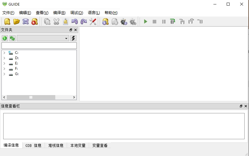 GUIDE编程工具是一款跨平台IDE编程环境。从编程语言上,GUIDE完美支持 C/C++ 和 Pascal 三种语言的编辑、编译和调试运行工作。其中在调试过程中,你可以看到变量、本地变量、编译信息、GDB信息、堆栈信息等各种详情的信息。界面上,GUIDE设计相当的简洁清爽,功能的排版上也是十分的清晰,保证让用户们一眼即可看到自己想要的功能!同时为方便用户更好的使用该IDE,软件还提供了非常便捷的快捷键操作哦,且这些快捷键的功能与大多数IDE的功能都非常的相似,因此使用者完全不用担心会把快捷键记混淆。对这款软件感兴趣的小伙伴们,欢迎大家免费下载体验。