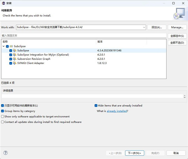 Eclipse是一个非常优秀的开源IDE,目前支持C/C++、JAVA、JS、PHP等语言的程序编写,Subclipse是一个针对Eclipse打造的框架和插件服务,用于通过插件组件构建开发环境。Subclipse是一个为可以Eclipse添加Subversion功能,支持的插件最新版的Subclipse。除此之外,Subclipse安装和使用方法也很简单,Eclipse从3.5版本开始,它的安装目录下就多了一个名为“dropins”的目录文件夹,只要将本站的Subclipse插件资源包解压之后拖到该目录即可安装插件。需要Subclipse插件的朋友们欢迎前来下载使用。
