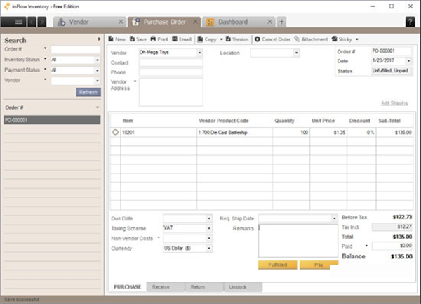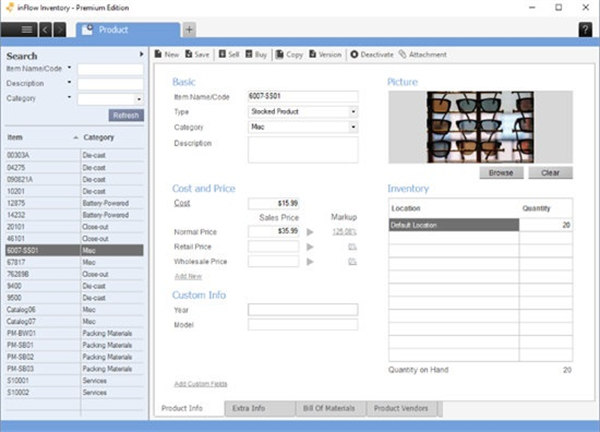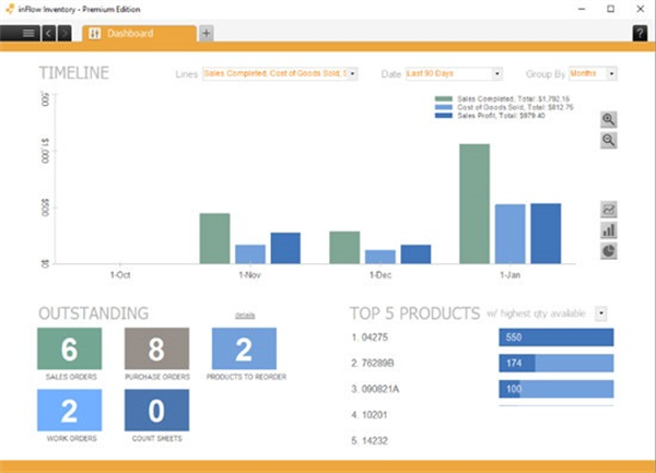 inFlow Inventory一款实用的存货管理工具,能透过设计过的流程使企业存货成本大为减少。优点包括能快速找到任何一笔存货、设定进货规则避免进货太多和太少、内建的工作流程自动提醒使用者当需要提货/送货/包装商品的时机点。inFlow Inventory只要一台电脑和互联网接入,你就可以走了。它允许您快速访问业务的所有方面。它也是颜色协调,使其直观和易于使用。能秀出目前销售量最佳或利润最高的产品,也能根据过去的销售数据来预测未来的营运收入等。inFlow Inventory能快速找到任何一笔存货、设定进货规则避免进货太多和太少、内建的工作流程。我们的服务器自动处理您的所有备份。不再担心丢失有价值的数据。使用您的手机作为条形码扫描仪,并用我们的Android或iOS应用程序编辑产品。无论使用什么客户机,您的产品总是同步的。