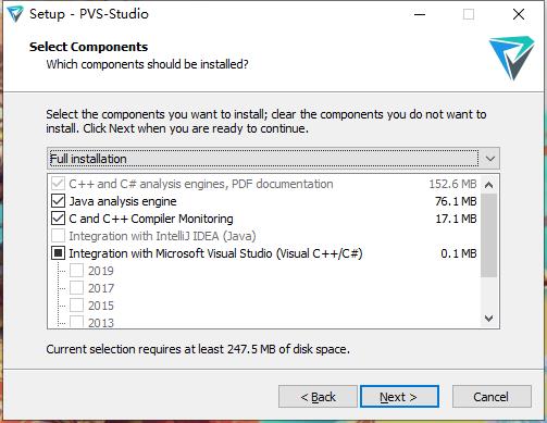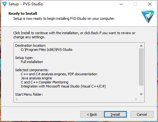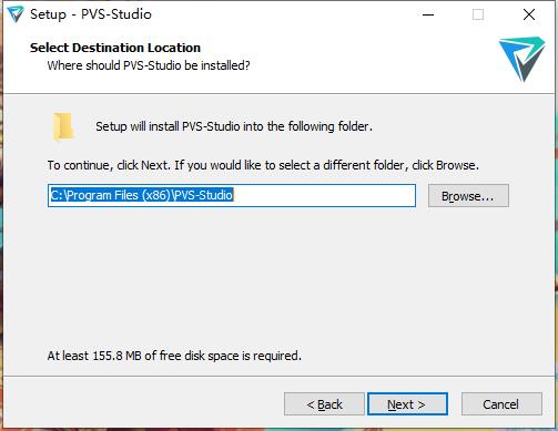 安装向导默认设置的软件默认安装路径为C:\Program Files (x86)\PVS-Studio