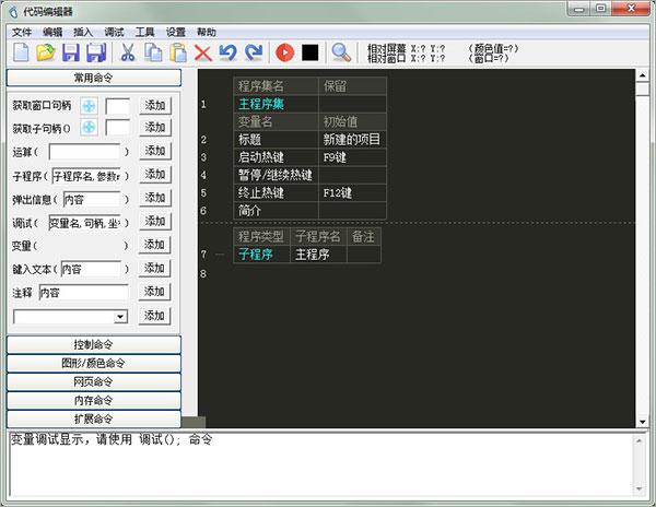 4、当然啦,如果你不想要自带的这些项目脚本,也可选择进行新建,在以下界面,输入一些常用的命令、控制命令、网页命令等;