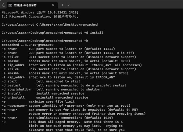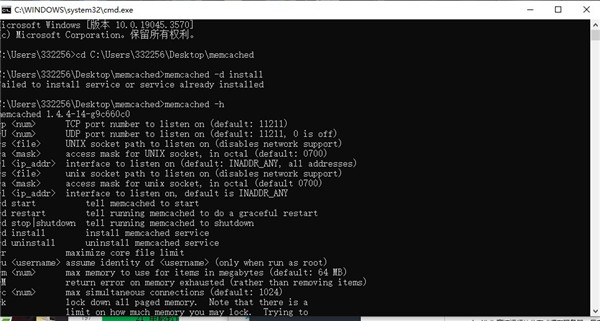 1、首先将文件解压缩然后放到自己习惯的位置,比如:D:\memcached.2、然后打开cmd命令行,转到该目录,并输入“memcached -d install”。
