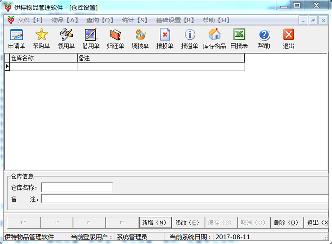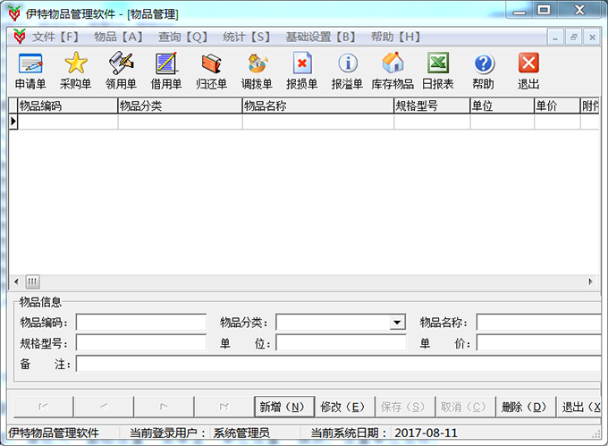 伊特物品管理软件是一款专业实用、功能强大的物品管理软件,作为一个领导,单位有多少物品,这些物品谁在用,是否浪费,是否借出后归还,作为一个仓库管理员,你的仓库是否好好归置了?是否有完整的物品档案,是否对物品进行分类了?等等一些列的繁杂琐事困扰着他们。伊特物品管理软件就能很好的解决上面出现的问题,对物品进行很好的归置,对物品进行档案录入,支持数据备份、数据恢复,不再丢失数据。强大的查询统计功能再也不用一个个翻一个个找,完全支持Excel导入导出,提供多种报表用户能够方便的查询分析等等,帮助您管理好企业的物品,管理好您的仓库,软件操作简单,使用方便,欢迎有需要的朋友下载体验!