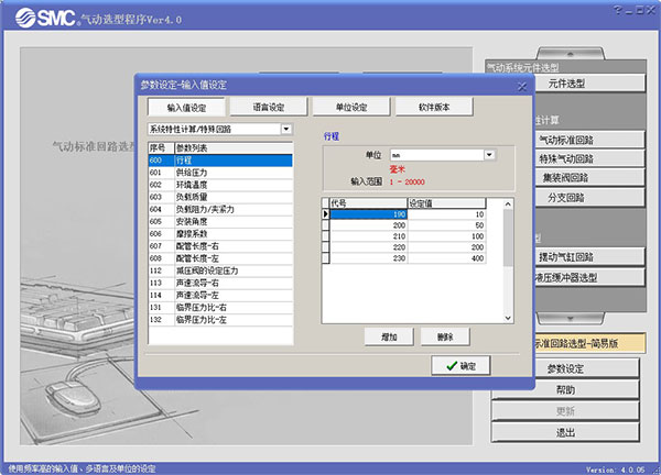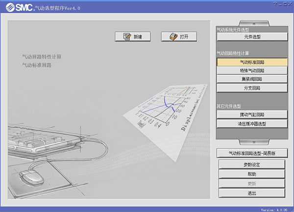 smc气动选型软件官方版是一款专业的气动选型软件元件选型程序。可以用于SMC气缸、电磁阀、速度控制阀、接头、配管、消音器等气动元件的选型,并支持SMC一般的气缸驱动回路、二压驱动回路、合成元件回路、电磁阀集装底座回路、配管分支合流回路的选型。软件纯自动操作,只需要指定气缸、电磁阀、速度控制阀、配管、液压缓冲器等的系列名,满足要求条件的各元件的最小型号便能自动选出。而且软件的v4.0在v3.0的基础上,还增加了新的回路及产品系列、画面式样一新且加入更便利的机能的改进版本。还可以对选型结果进行打印和文件输出。进行选定结果的保存。选择保存的位置,输入文件名就可以保存选型结果,非常的方便实用。有需要的用户可以下载体验!