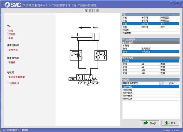 使用简单的简易版,选定气缸标准回路的元件型号。