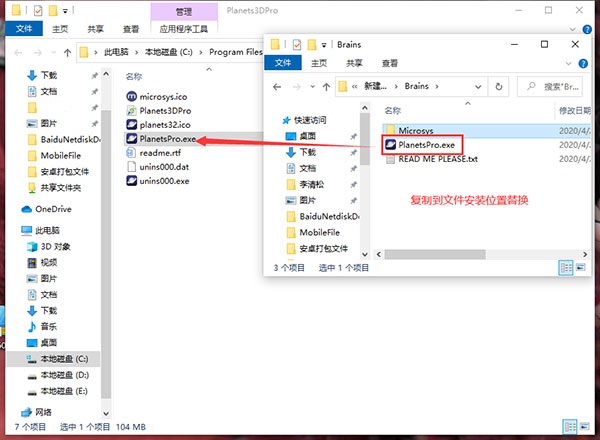 7、成功安装软件后,将Brains文件夹内所有文件复制到原安装目录下进行替换。【C:\Program Files (x86)\Planets3DPro】