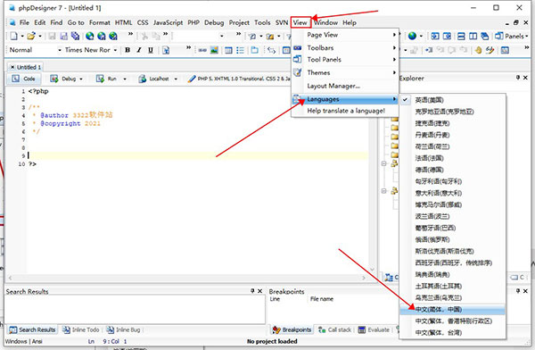 4、phpDesigner 7支持格式:PHP,HTML,XHTML,CSS,Java,Perl,JavaScript,VB,C#,SQL等等。