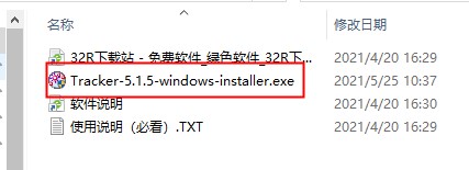 1、下载并进行解压后即可获得tracker软件安装包;然后双击“Tracker-5.1.5-windows-installer.exe”;