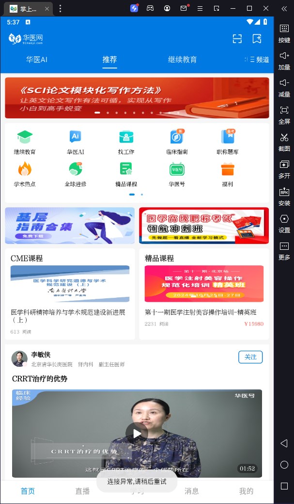 掌上华医电脑版是借助模拟器在电脑上运行的一款医学教育软件。软件以“用教育和科技推动医疗健康发展”为宗旨,互联网医学教育为核心,采用线上线下相融合的教学方式,为广大卫生人员提供专业、便捷、高效的医学教育培训服务。