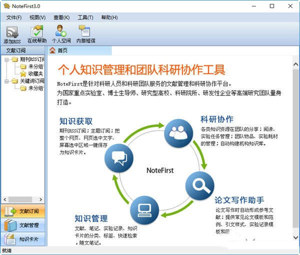 NoteFirst(文献管理软件)是一款功能强大、操作简单、实用性强的文献资料管理工具。NoteFirst软件功能非常强大,不仅提供文献管理功能,还提供论文写作帮助、科研协作交流以及学术信息搜索等功能,可以帮助用户更好的进行论文写作。NoteFirst 在分析国内外文献管理、知识管理、协同工作、科学社区等软件功能的基础上,结合中国科研人员的文化特点、使用习惯,实现了团队科研协作和个人知识管理的统一,为科研人员提供文献、笔记、知识卡片、实验记录等资源的便捷管理,文献订阅,参考文献自动形成,电子书自动形成等功能。最近更新的4.1版本,NoteFirst是在参考文献管理软件的基础上,还新增加了RSS阅读器、知识管理、团队协作功能。是不是心动了,有需要的朋友可以下载看看哦。
