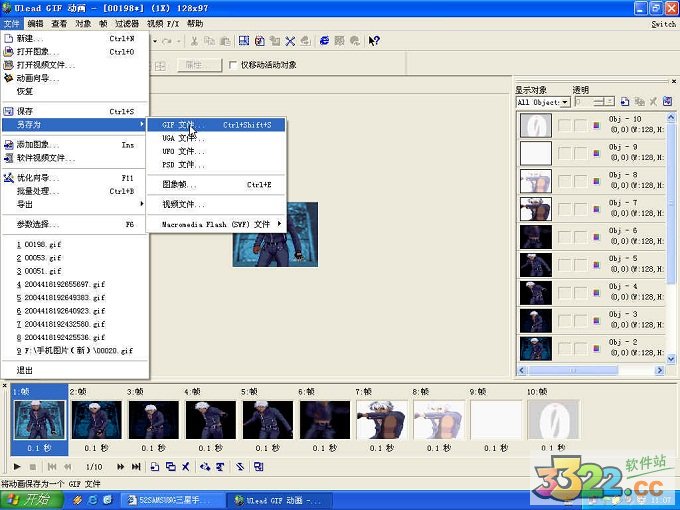 4.这时动画已经修改完了,接下来是保存动画了,点击“文件→另存为→GIF文件”输入文件名即可。(如下图)