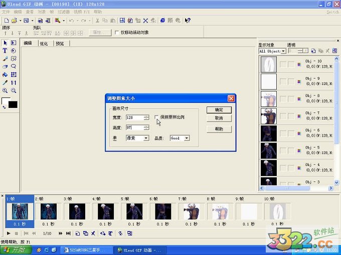 新版本的ulead gif animator 5中文版在图像压缩优化方面更完善,你可以利用有损压缩、抖动颜色、颜色索引编辑等等功能来进一步优化你的作品的输出效果,而这些操作都会即时可以看到预览效果。