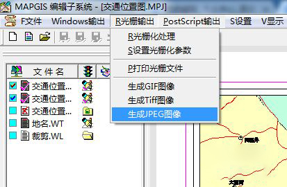 6、点击菜单“R光栅输出”,下拉菜单中选择“生成jpeg图像”或“生成gif图像”及“生成tiif图像”均可。一般选择生成gpeg格式够了;