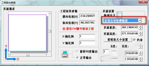 2、弹出“工程输出编辑”对话框,在版面定义选项中下拉选择“系统自动检测幅面”;
