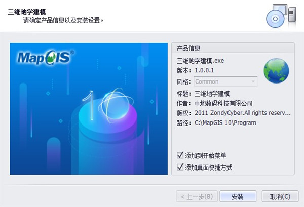 4、设置软件安装路径,默认为C:\MapGIS 10\;