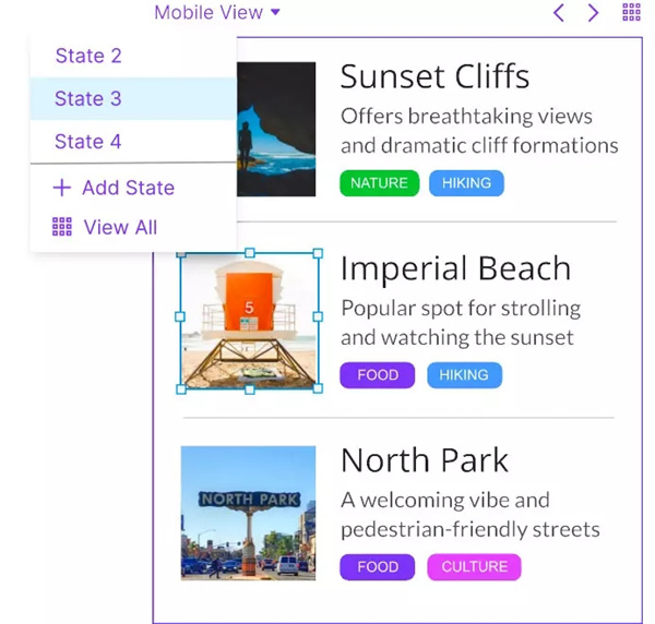 使用Axure RP 10,您可以在新的“所有状态”视图中并排查看和编辑动态面板的所有状态。在您的设计环境中,跳入和跳出面板也更容易。