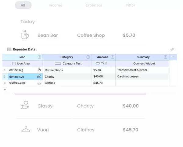 将小部件转换为重复器并将数据列连接到小部件的新功能,使创建数据驱动的表和网格比以往更加容易。