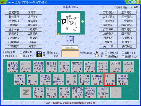 五笔打字通电脑版是一款能够快速学会使用五笔打字的教育类软件,傻瓜似的操作让我们不用看帮助文档即可上手打字,独有的空心字提示非常直观,让我们的用户记住键盘上每一个键对应的笔画。除此之外,五笔打字通还能够测试用户的打字速度,练了一段时间后想要看看自己有没有进步,那就使用这个功能查看一下,有进步也能够激励自己努力学习,想要学习五笔打字的用户不要错过这款软件哦!