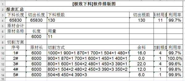 4、可将最省料的切割方案导出到Excel,有利于制作各种企业报表。