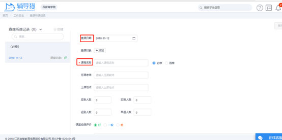 以查课模块为例,点进去就可以填写相应的查课记录。