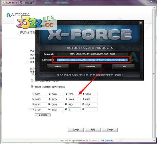 6、点击“我具有Atutodesk提供的激活码”将生成的激活码复制到入内,点击NEXT