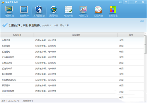 1、智能云安全让防护更专业作为一款永久免费的安全辅助工具,瑞星安全助手基于瑞星公司在信息安全领域多年来的专业技术积累,保证了对电脑“隐患”的快速响应处理。其中,木马云查杀的病毒库全部放在云端,能够实现自动后台诊断和在线诊断,查杀效果尤为精准,这就体现出智能云安全的防护专业性。
